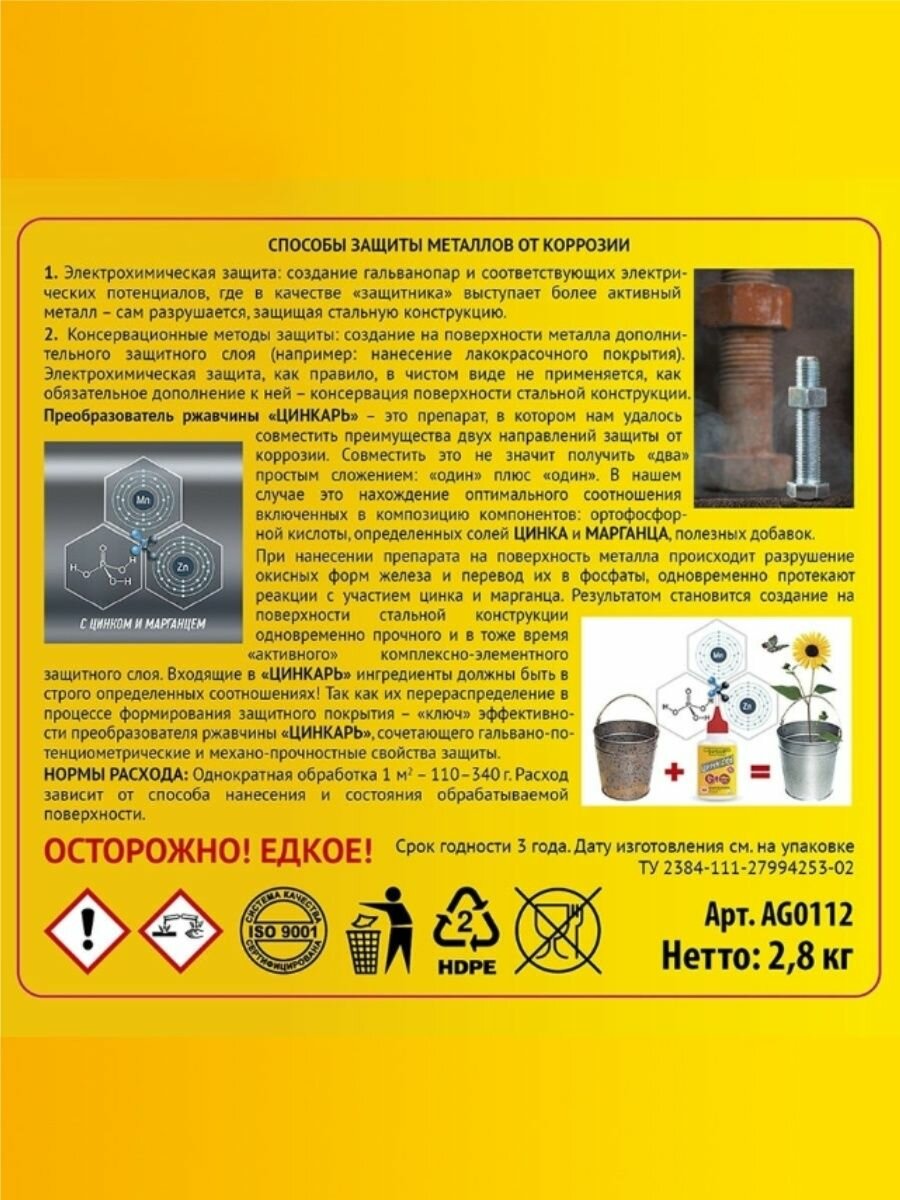 Ниже Вы можете прочитать отзывы на Преобразователь Ржавчины Agat "Цинкарь" 2,8Кг AGAT Avto арт. AG0112, ознакомится с подробными характеристиками, посмотреть интересные обзоры и фотографии на Преобразователь Ржавчины Agat "Цинкарь" 2,8Кг AGAT Avto арт. AG0112.