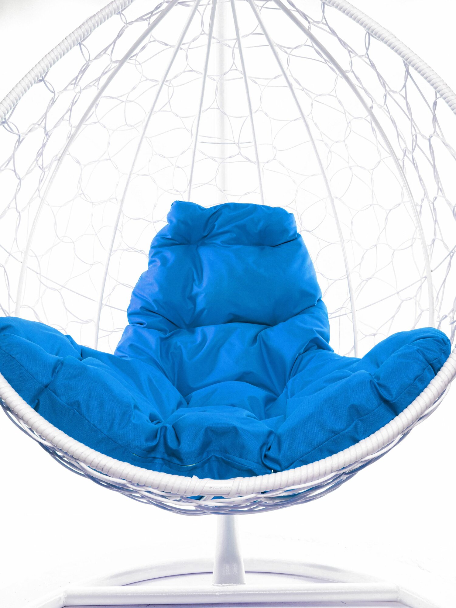 Подвесное кресло капля ротанг белое (без стойки), голубая подушка