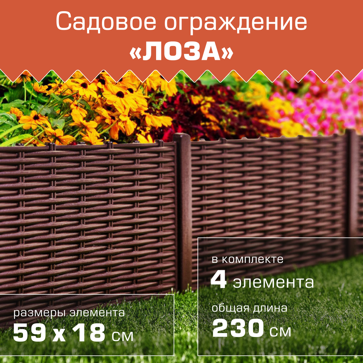Купить Забор декоративный МастерСад Лоза коричневый 2,3 метра / бордюр для сада и огорода / Ограждение садовое для клумб и грядок / забор пластиковый