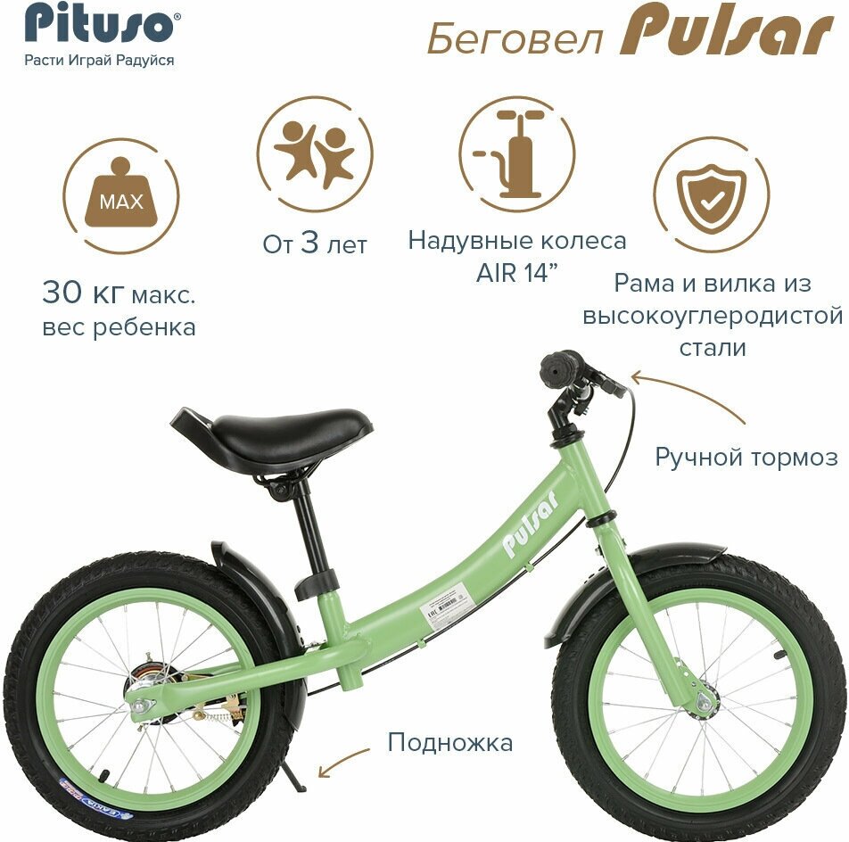 СохранитьБеговел Pituso Pulsar надувные колеса AIR 14" Green matt велобег детский интересное: