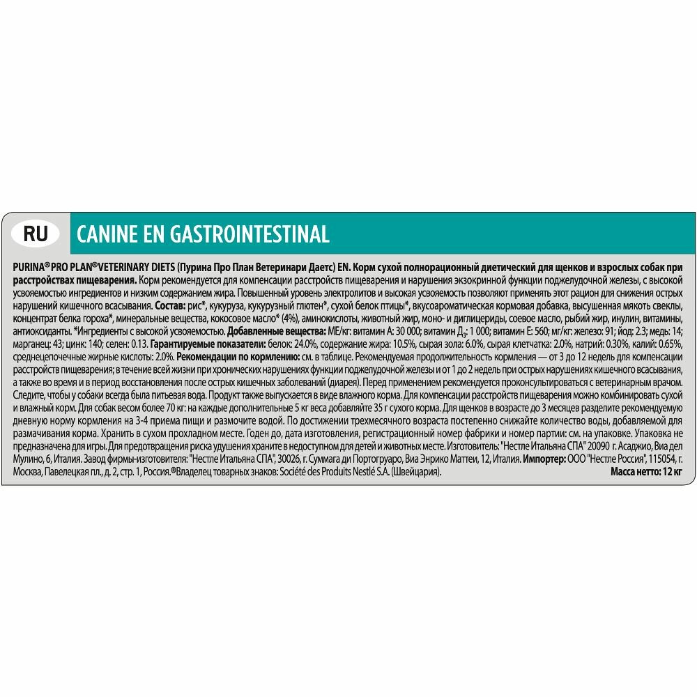 Pro Plan Veterinary Diets EN Gastrointestinal корм для собак при патологии ЖКТ Диетический, 12 кг.