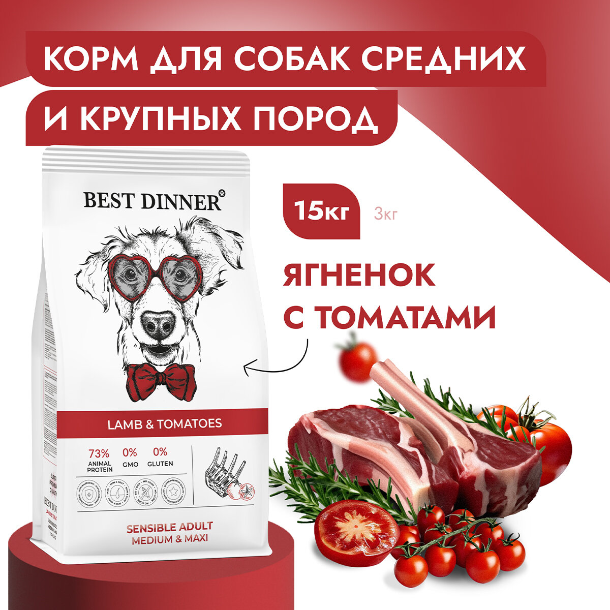 Best Dinner корм для собак средних и крупных пород, с ягненком и томатами 3 кг