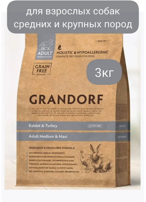 GRANDORF DOG 3кг Rabbit&Turkey (кролик с индейкой для собак средн и крупн пород) NEW