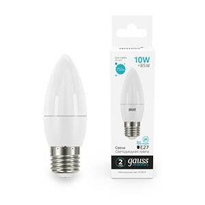 Купить Лампа светодиодная Gauss 10 вт, цоколь е27, свеча, нейтральный белый, 25000 ч, b37-10w-4100-e27