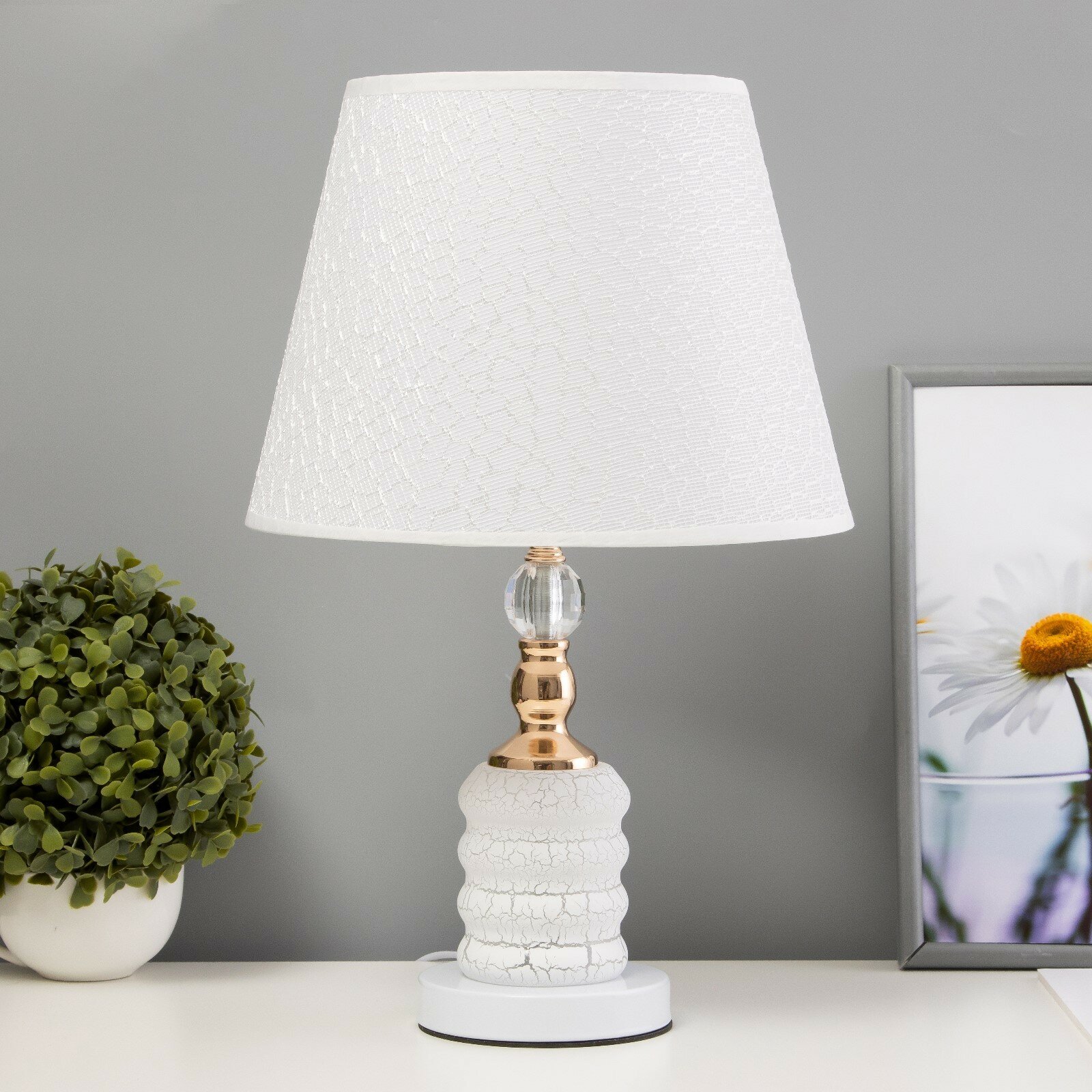 Лампа настольная Risalux E27, 40 Вт, LED подсветка, бело-золотой, 28*28*45 см