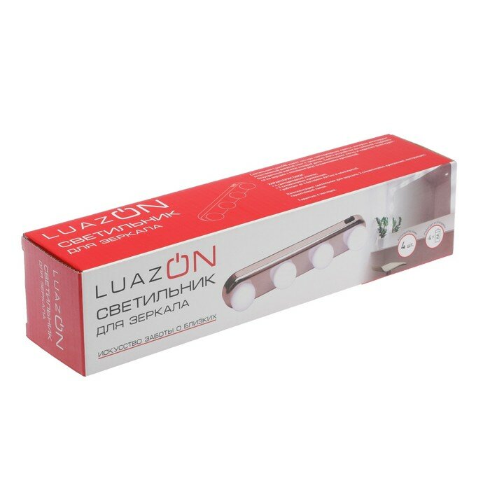 Подсветка для зеркала Luazon 101, 4 лампы, на присосках, 4хАА (не в комплекте) интересное: