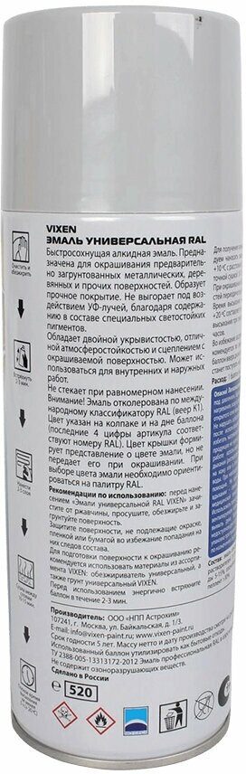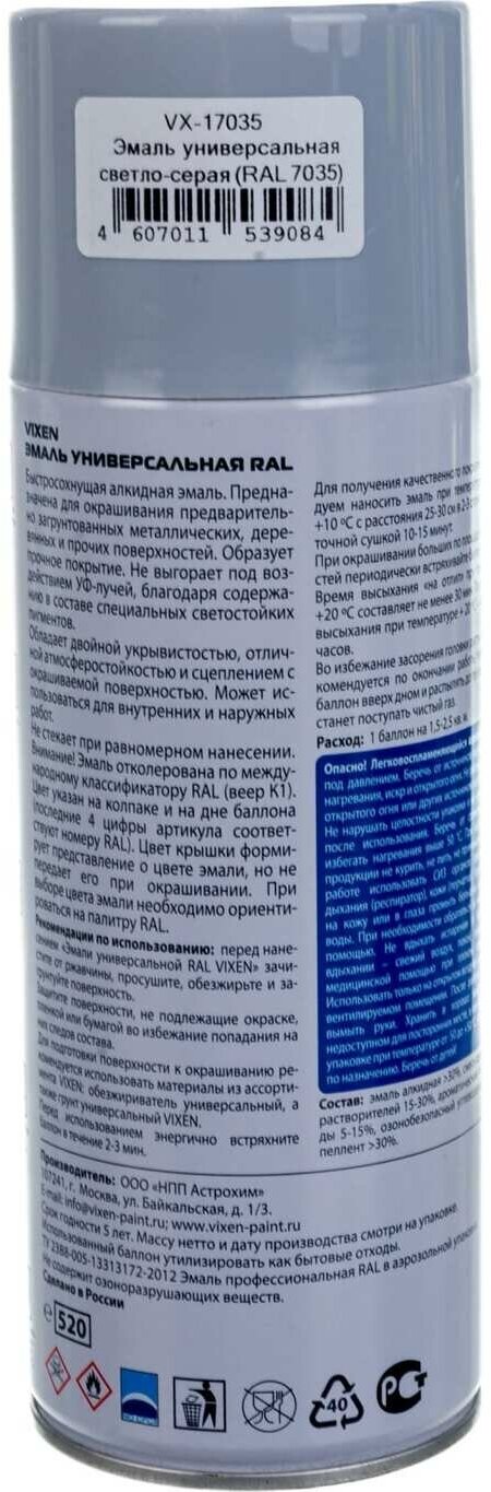 Автоэмаль VX-17040 Универсальная серая (520мл) (RAL 7040 ), VX17040 VIXEN VX-17040