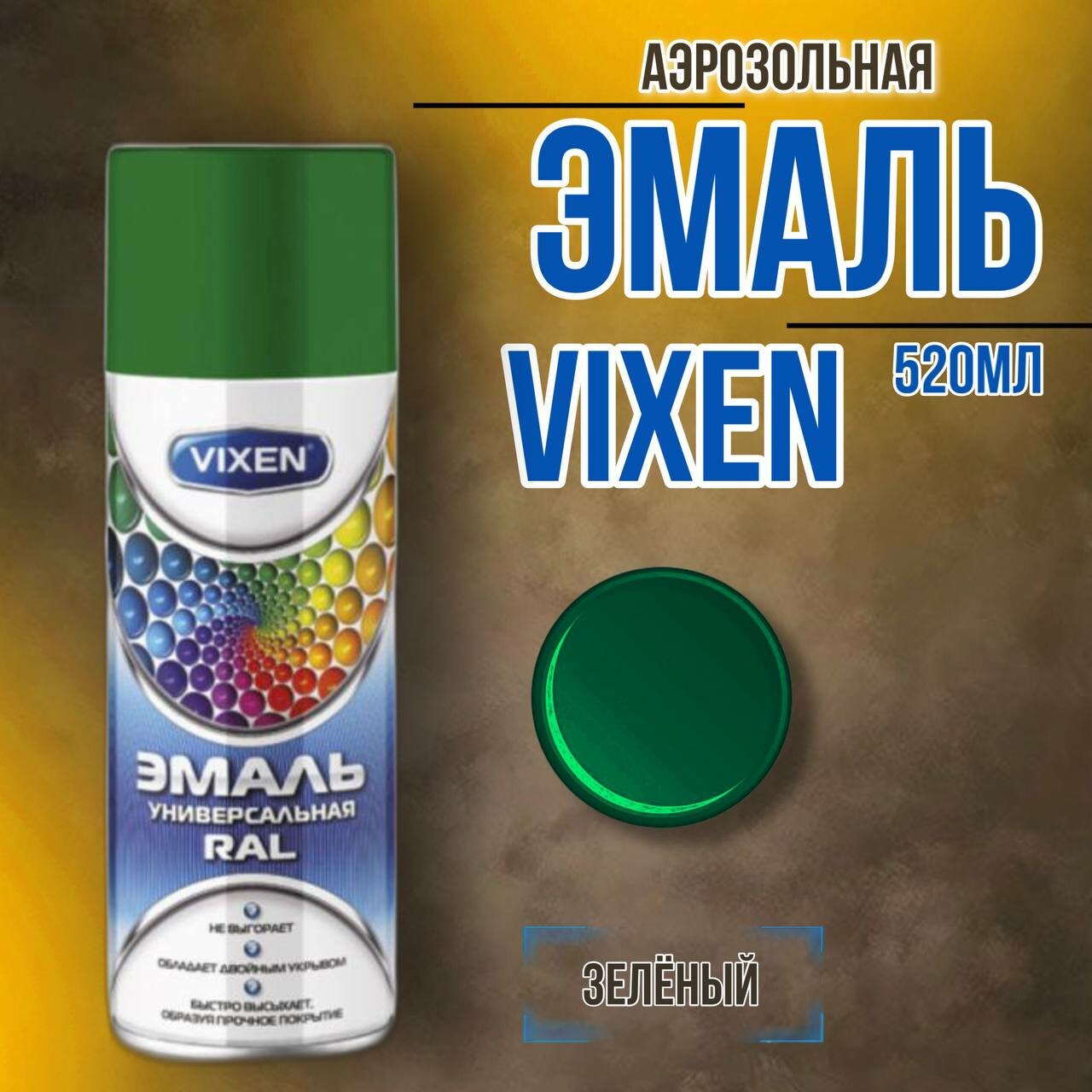 VIXEN Эмаль универсальная RAL, темно-зеленый (RAL 6002), аэрозоль