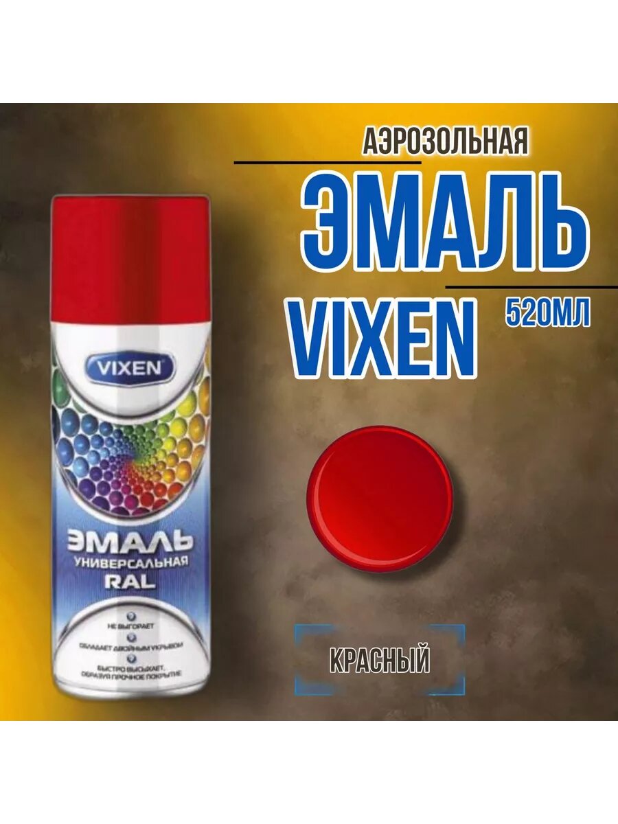 VIXEN Эмаль универсальная RAL, сигнальный красный (RAL 3001), аэрозоль