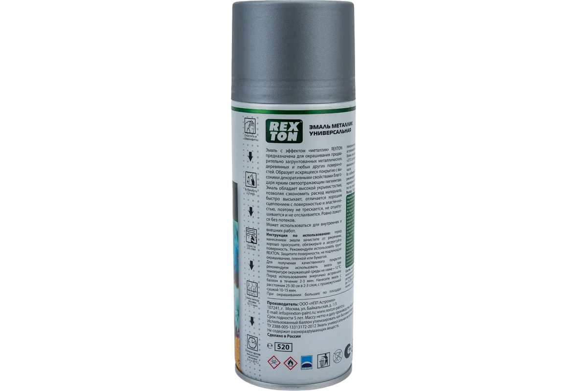Эмаль металлик универсальная, алюминий, аэрозоль 520 мл REXTON RT130.00, RT13000 REXTON RT130.00
