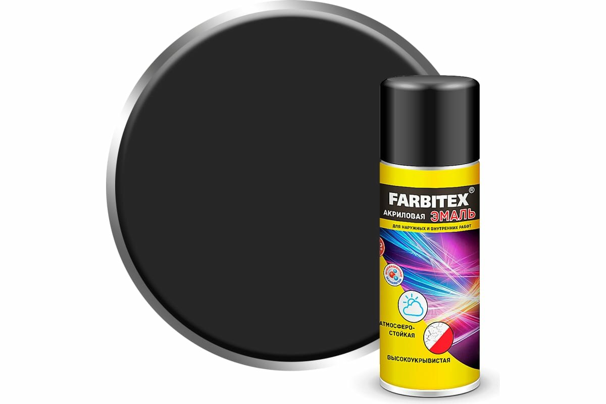 Купить Эмаль акриловая аэрозоль FARBITEX (Артикул: 4100008947; Цвет: Сигнальный черный RAL 9004; Фасовка = 0,52 л)