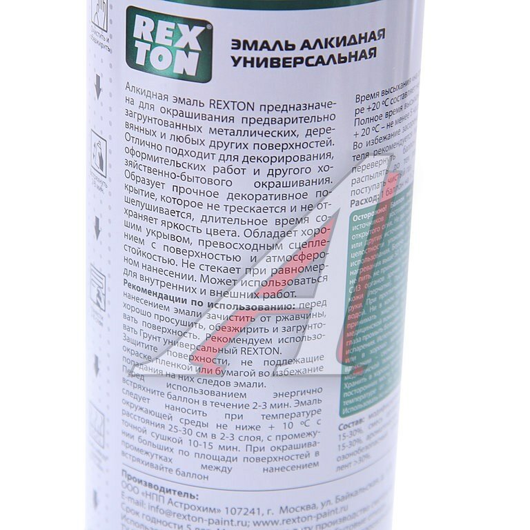 Краска алкидная универсальная "REXTON" белая глянцевая (520 мл) (аэрозоль), RT.100,20