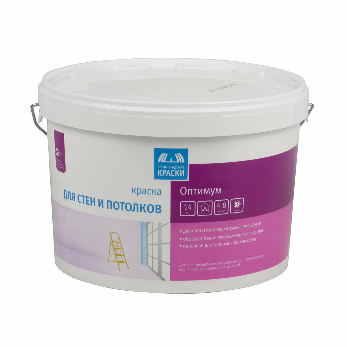 Краска для стен и потолков Ленинградские краски Оптимум, глубокоматовая, белая, 14 кг