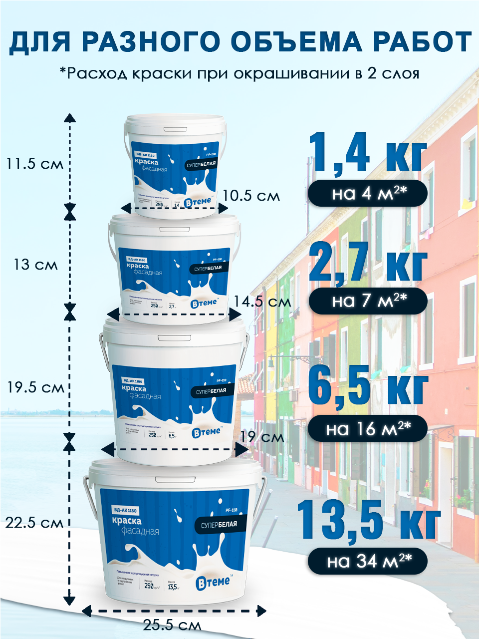 Краска фасадная акриловая ВТеме супербелая с матовым эффектом, 2,7кг интересное: