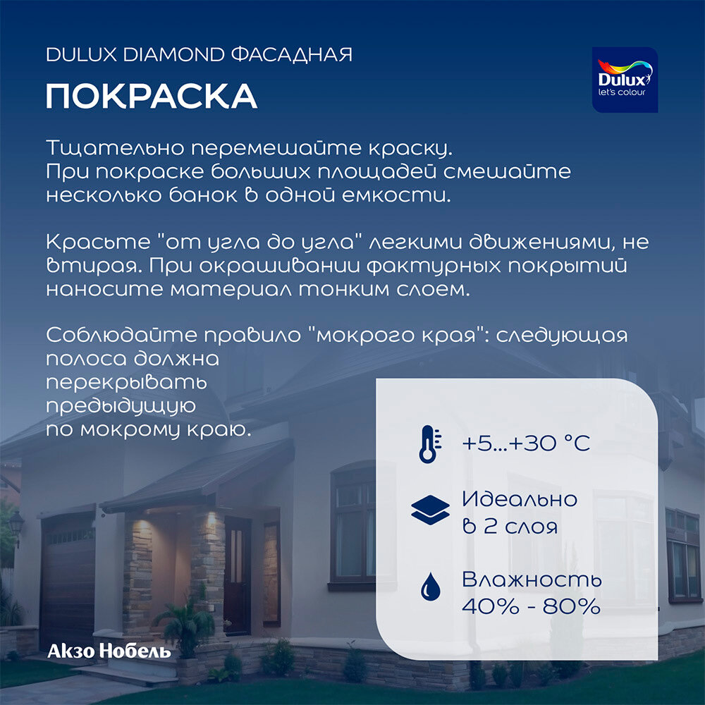 DULUX DIAMOND фасадная краска для минеральных и деревянных поверхностей матовая база BC 2,5л