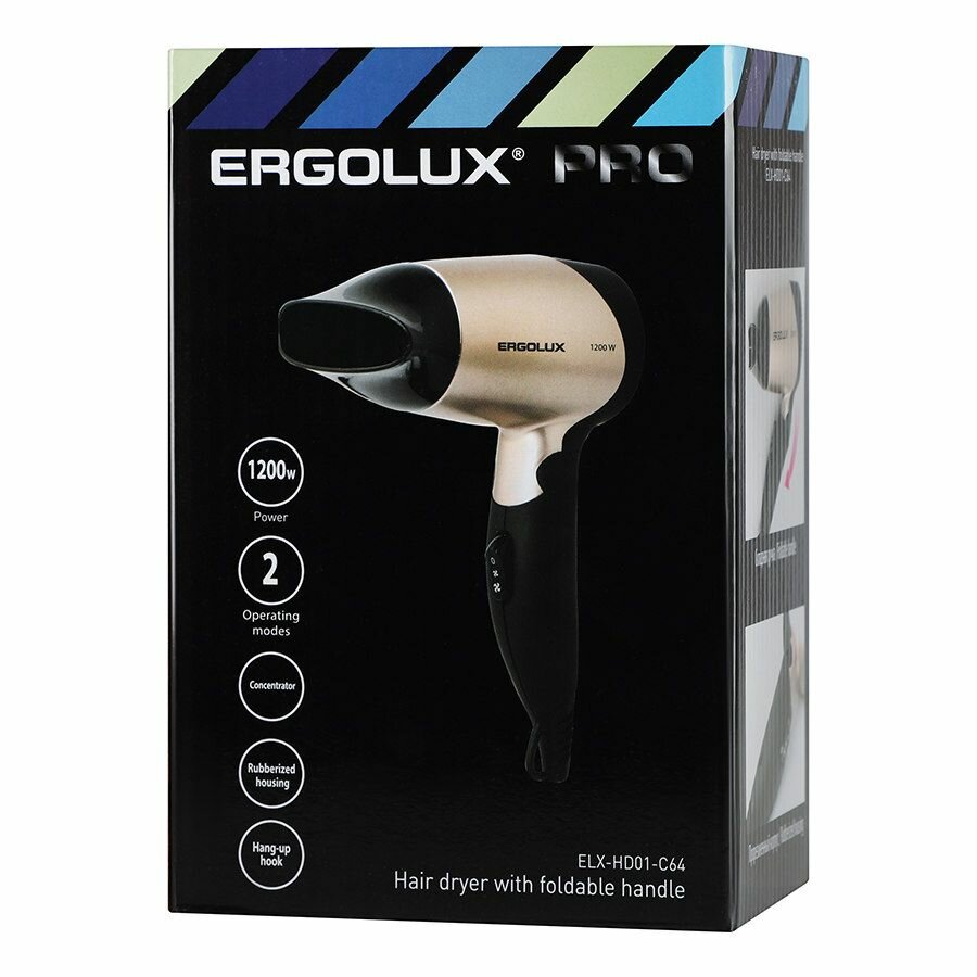 Фен со складной ручкой ELX-HD01-C64 черный/золото (1200Вт, 220-240В) ERGOLUX