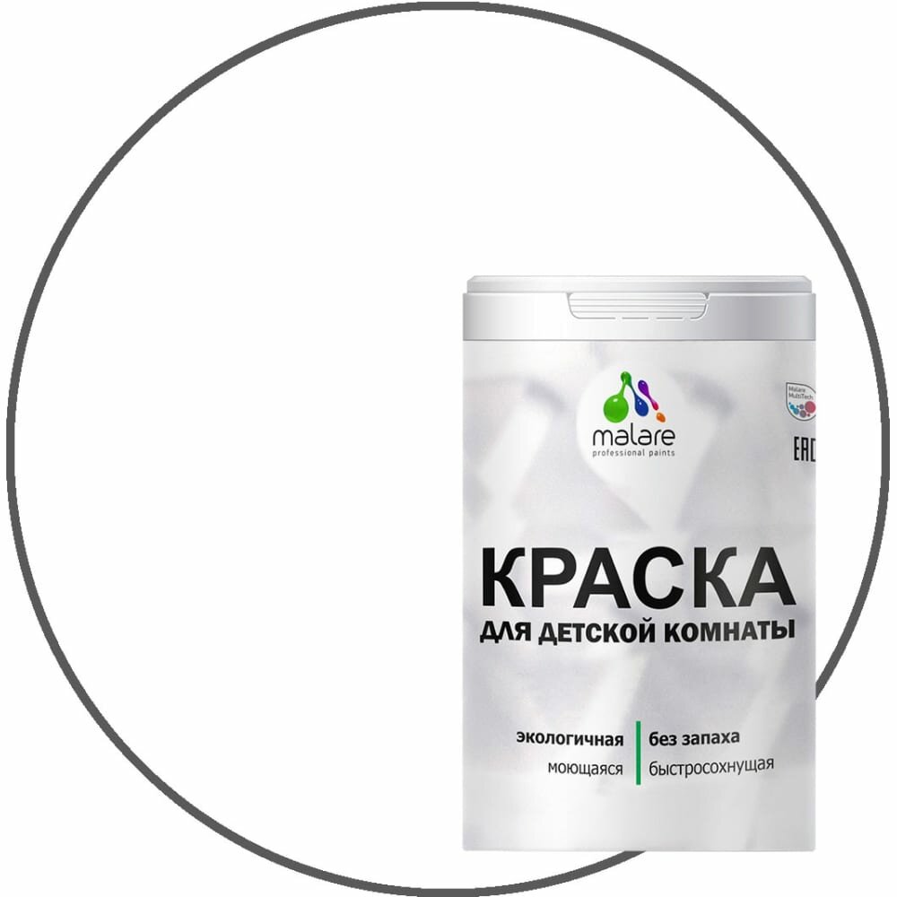 Краска Malare интерьерная для детской комнаты, для стен и обоев, для потолка, универсальная акриловая без запаха моющаяся матовая, белый, (1л - 1,3 кг)