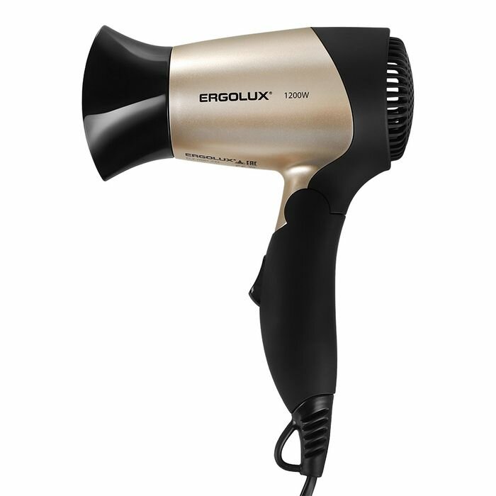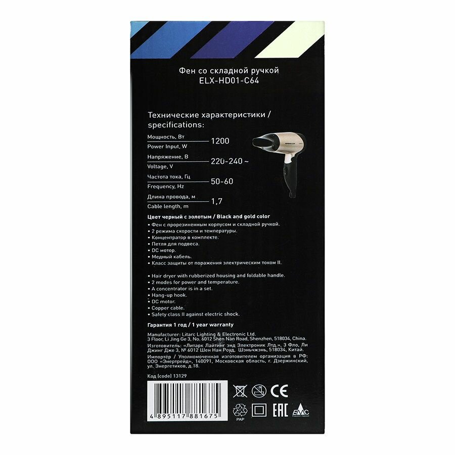 Купить Фен со складной ручкой ELX-HD01-C64 черный/золото (1200Вт, 220-240В) ERGOLUX
