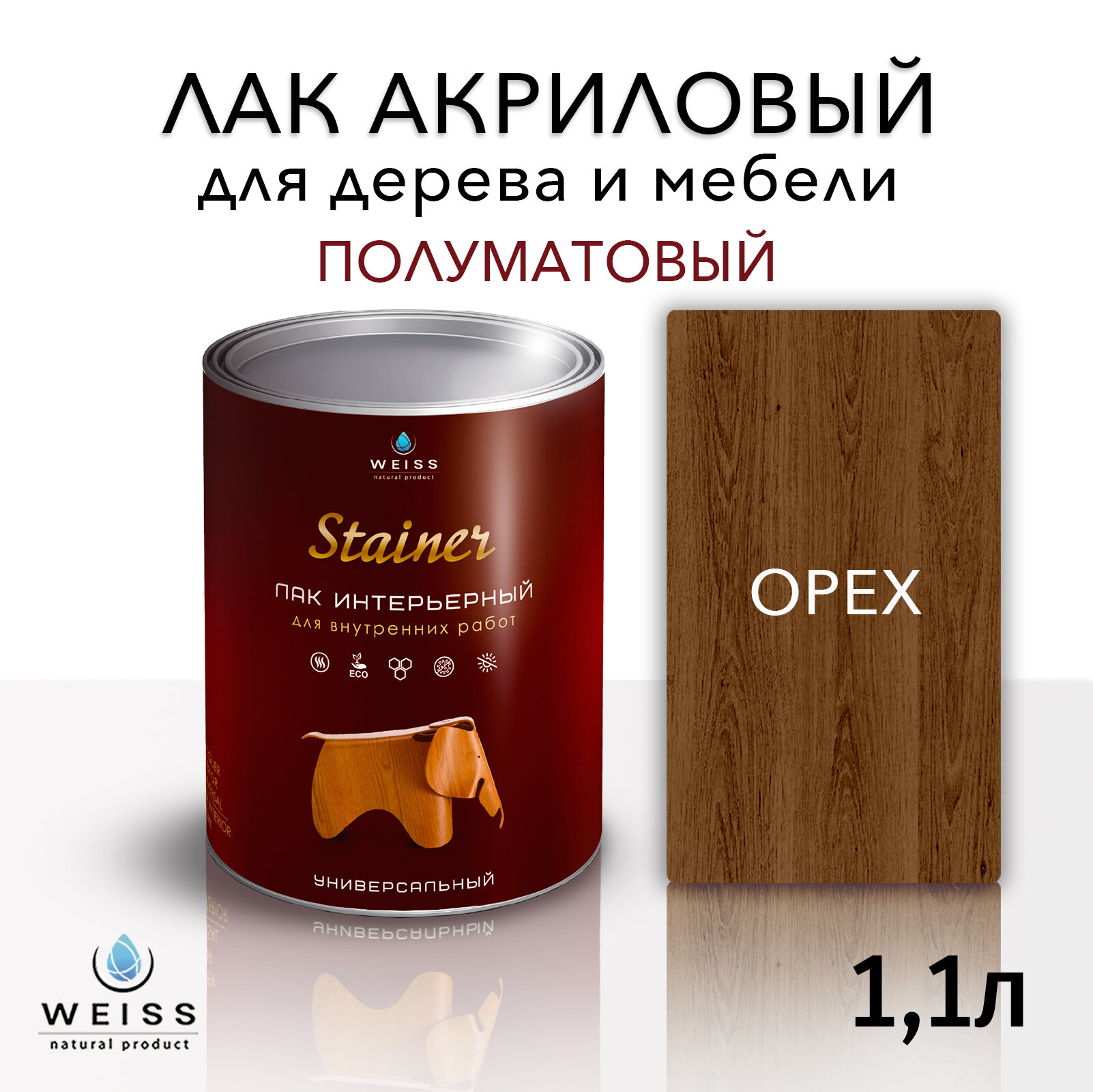 Лак WEISS Интерьерный полуматовый водорастворимый 020 орех 10 л