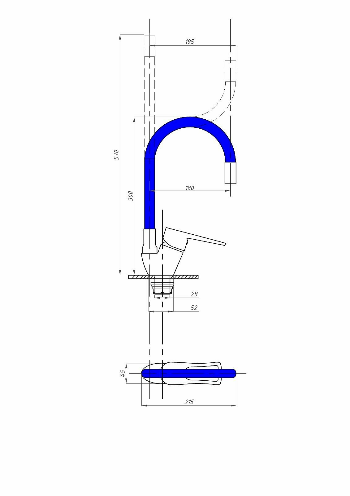 Смеситель для кухни Fauzt FZs-833-B129 гибкий излив тип см-моцба Синий .