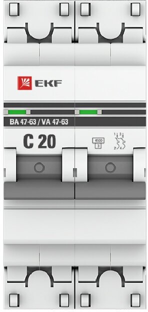 Выключатель автоматический EKF mcb4763-2-20C-pro 20A тип C 4.5kA AC 2П 400В 2мод белый (упак.:1шт)