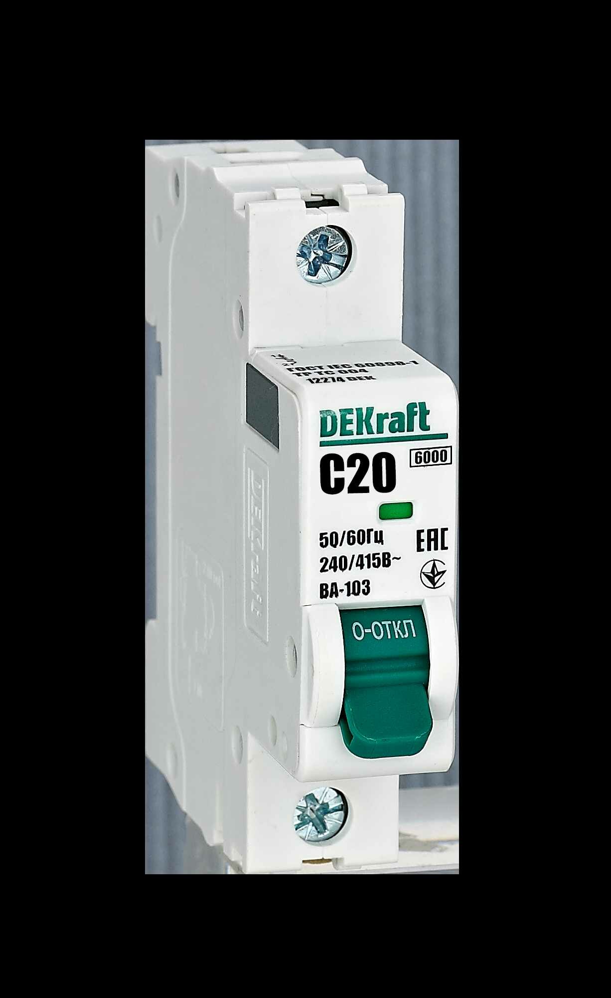 Выключатель автоматический DEKraft ВА-103, 1Р, 20 А, 6 кА, тип С