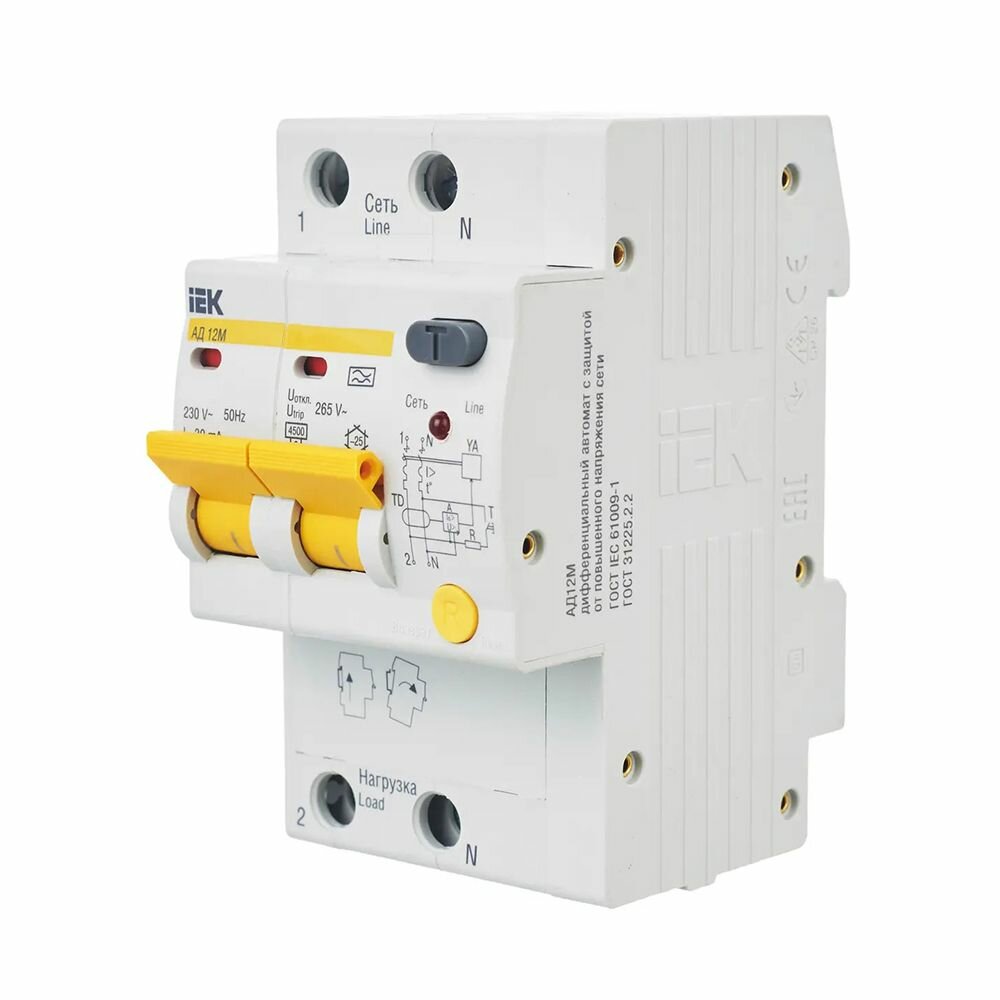 Выключатель автоматический дифференциального тока 2п C 20А 30мА тип A 4.5кА АД-12М, IEK MAD12-2-020-C-030 (1 шт.)