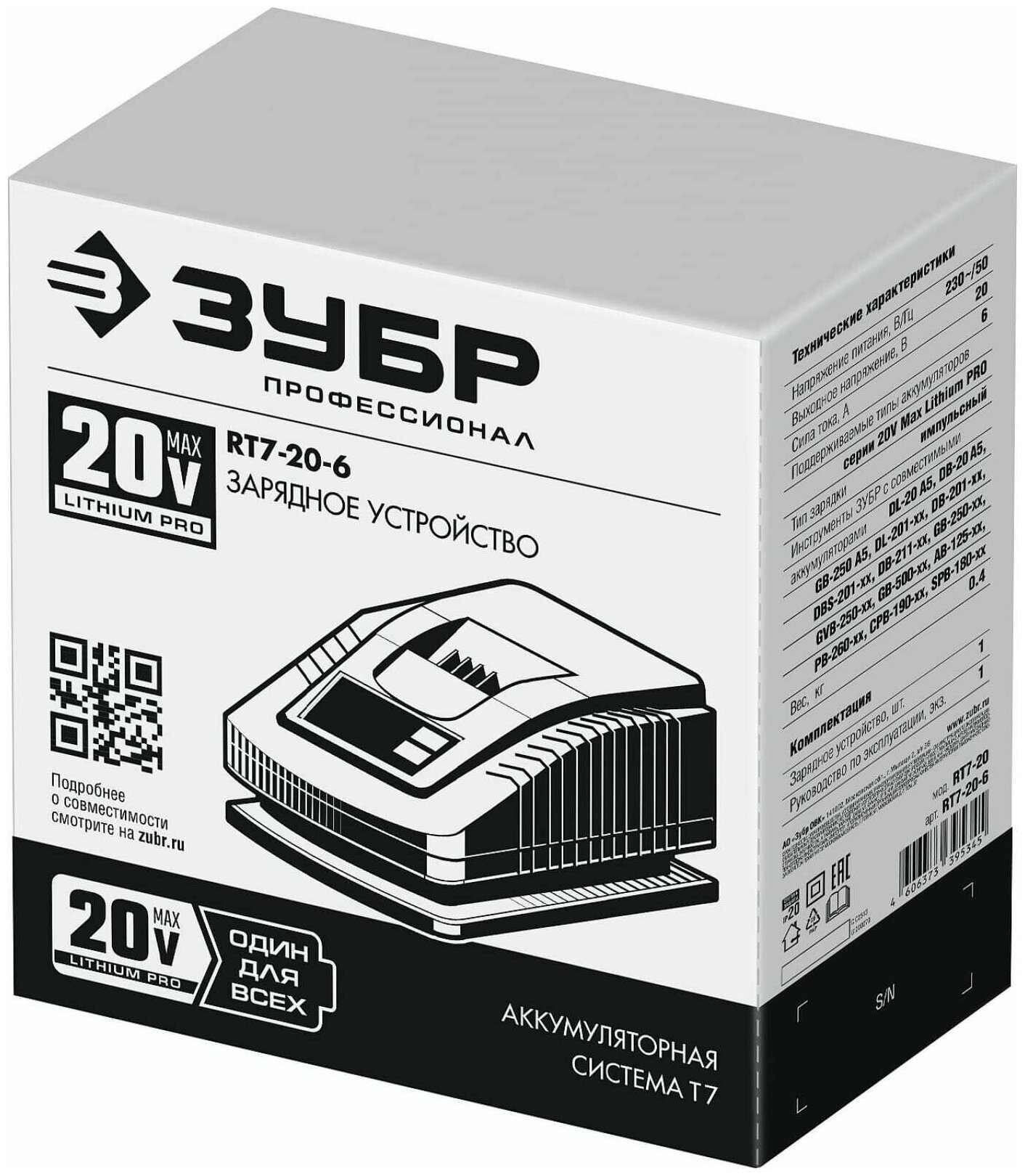 ЗУБР T7, 20 В, 6 А, зарядное устройство для Li-Ion АКБ, Профессионал (RT7-20-6)