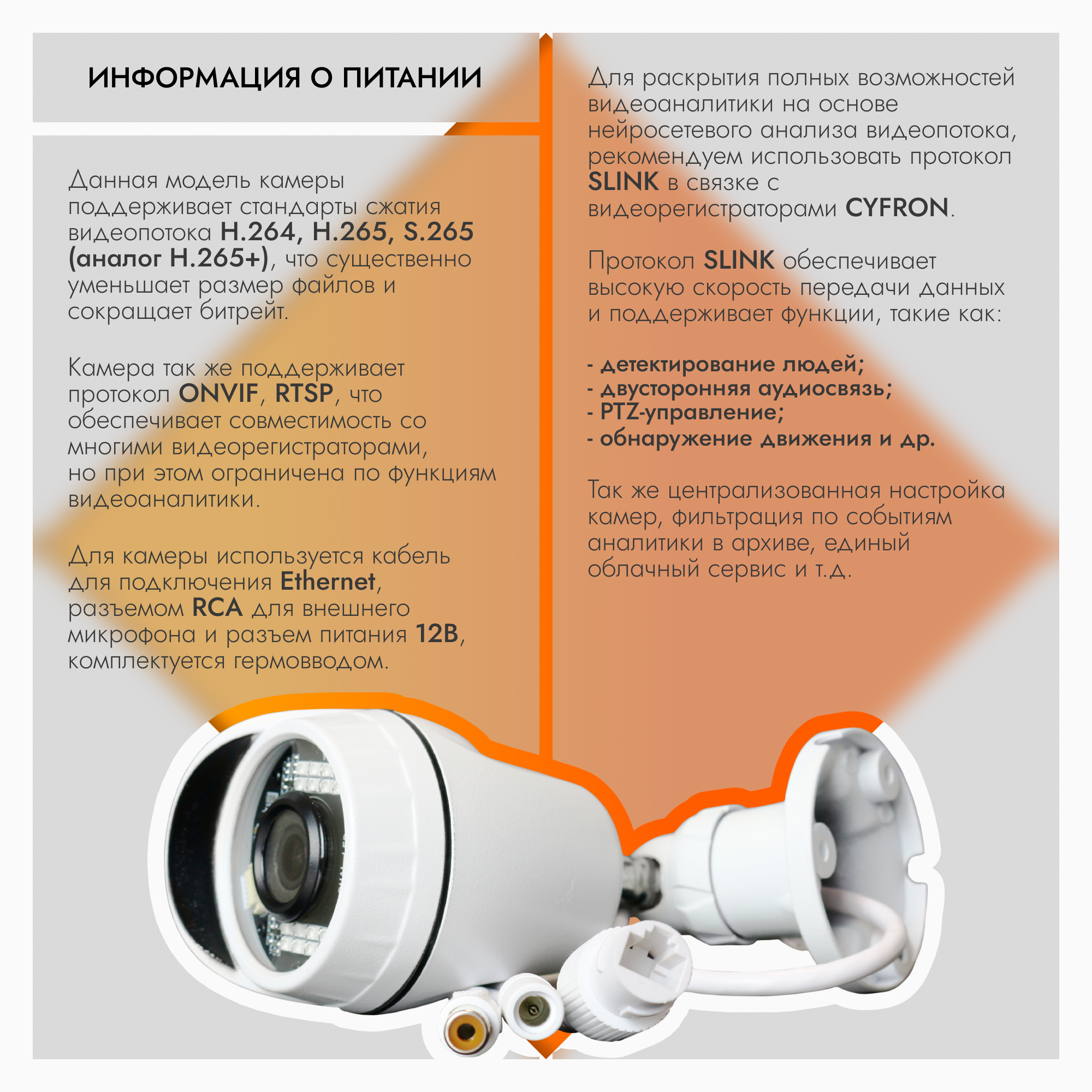 | Стандарт видеокамеры | IP |