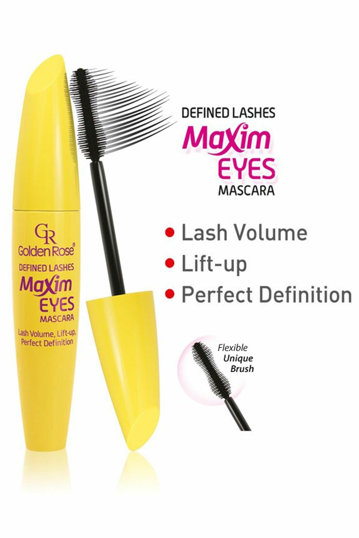 Купить Тушь для ресниц GOLDEN ROSE "Maxim Eyes", подкручивает, придает объем, прокрашивает, желтый флакон