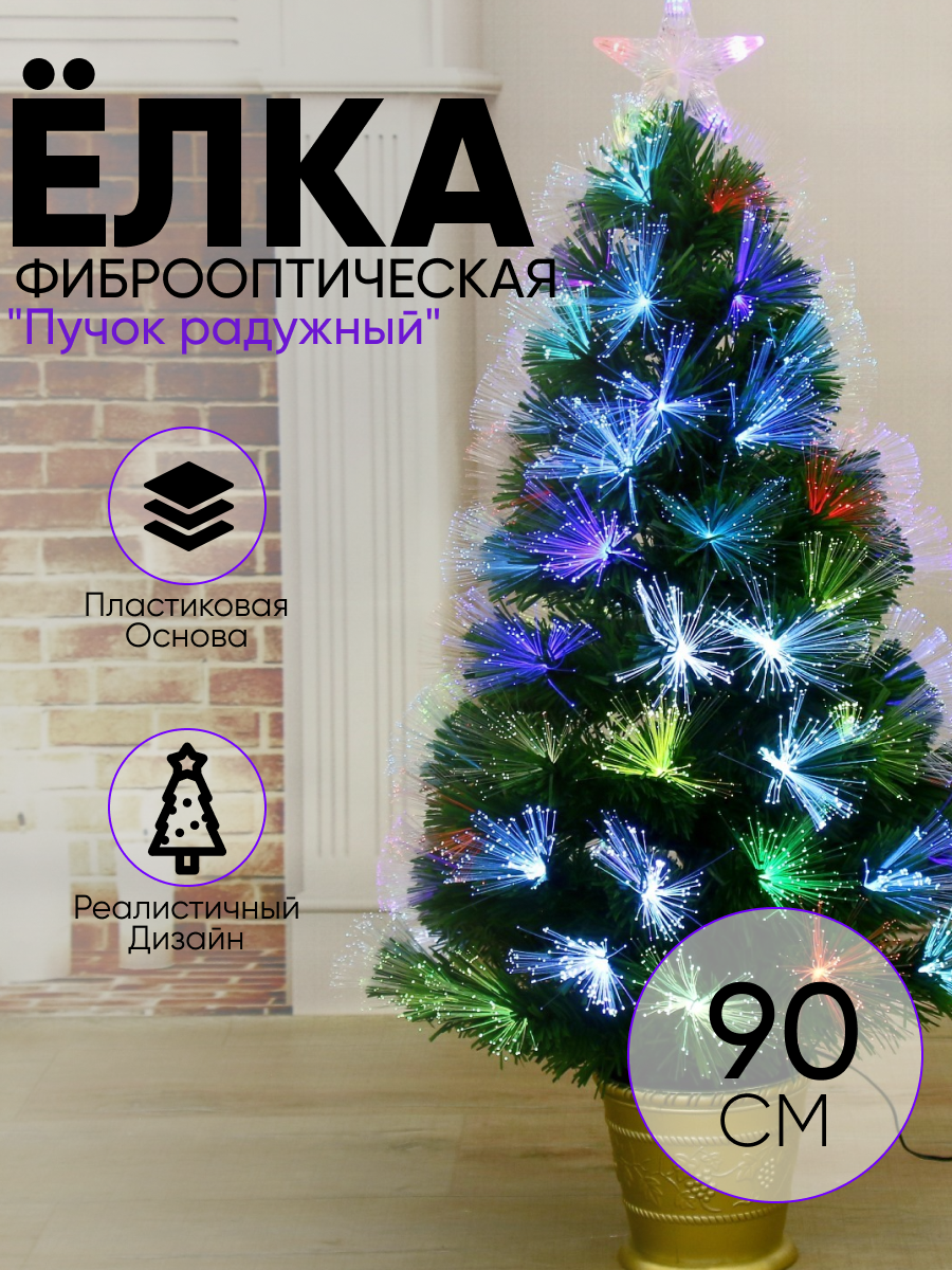 Купить Искусственная елка Зимнее волшебство фиброоптическая, пучок радужный, 90 см, 80 веток (2338613)