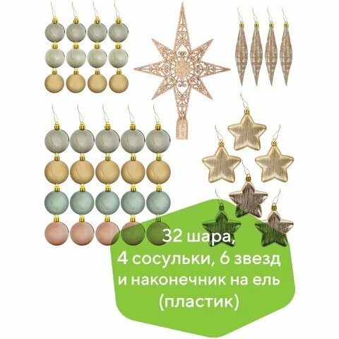 Новогодние игрушки на елку набор шаров подарочный, 39 штук, пластик, золотистый, Золотая Сказка, 591128