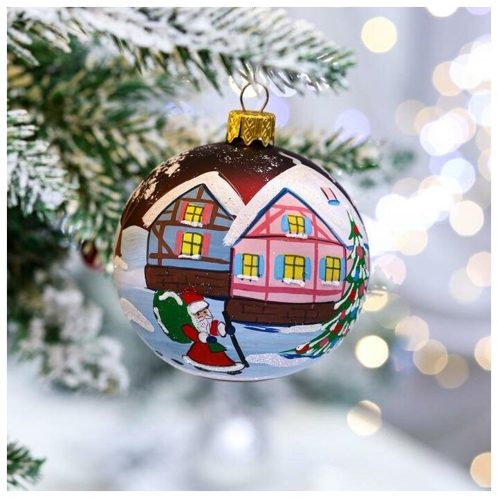 Ёлочная игрушка Шар "Дед у дома", 80 мм, стекло интересное: