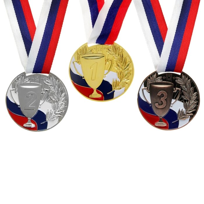 Медаль призовая, триколор, 1 место, золото, d=5 см