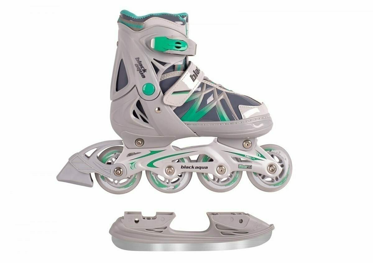 AS-410 Коньки BlackAqua 2в1 (коньки+ролики) , серо-зелёный (31-34р)