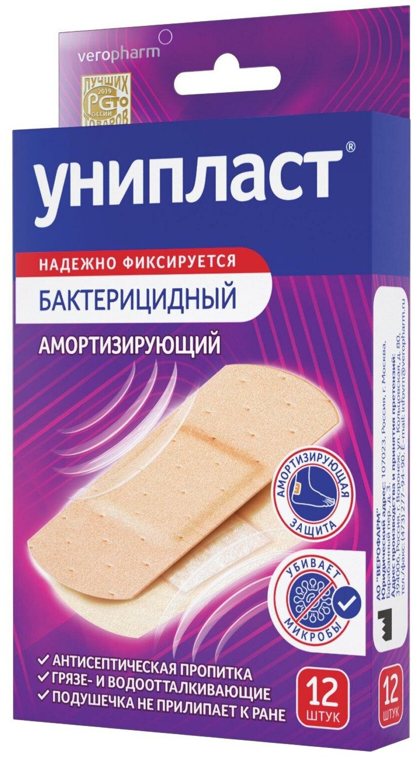 Набор лейкопластырей унипласт бактерицидных 12 шт, 1,9х7,2 см, амортизирующие (20034948)