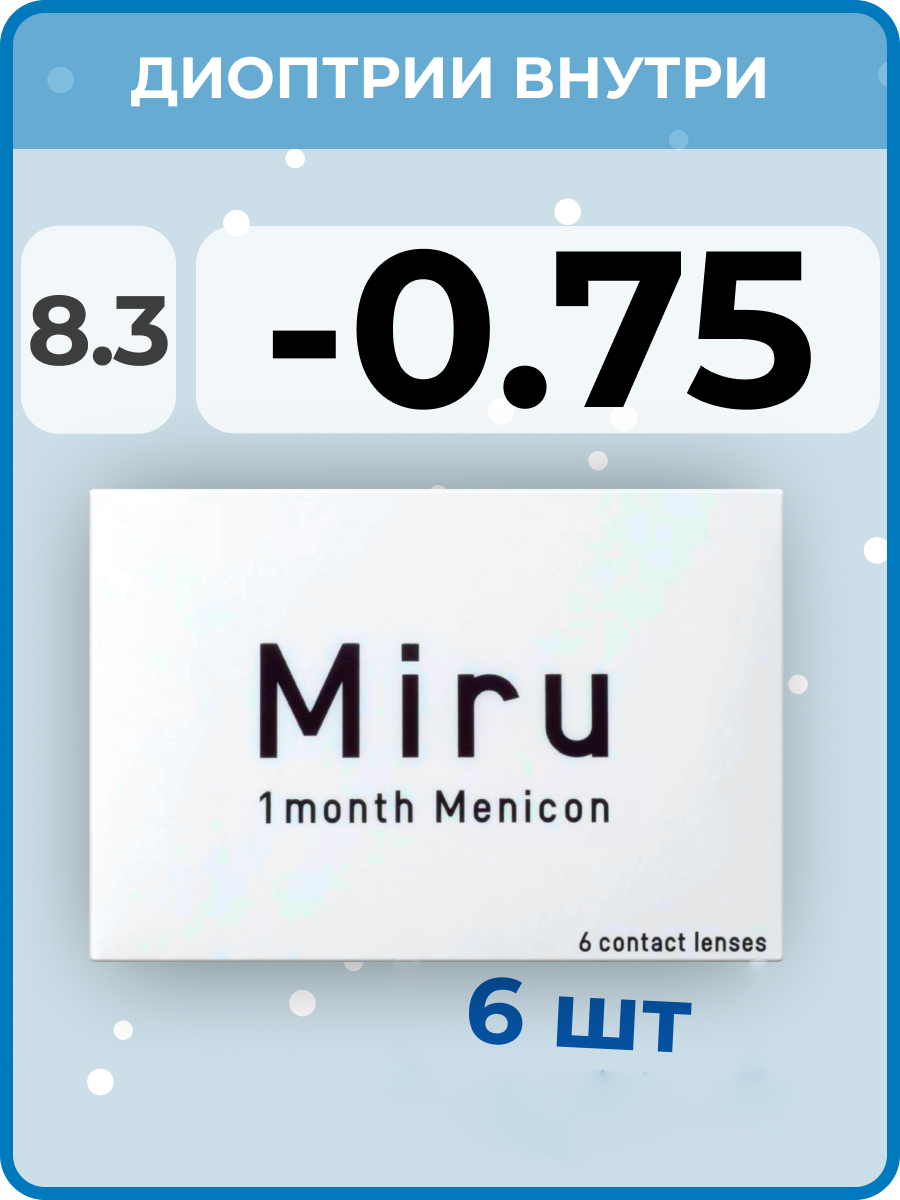 Контактные линзы на месяц Miru 1 month, 8.3, 6 шт. -0.75