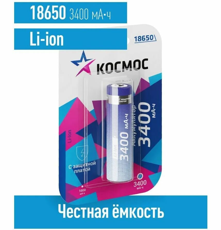 Купить Аккумулятор Космос Электро Космос Li-ion 18650 3400 mAh с защитой, 1 шт