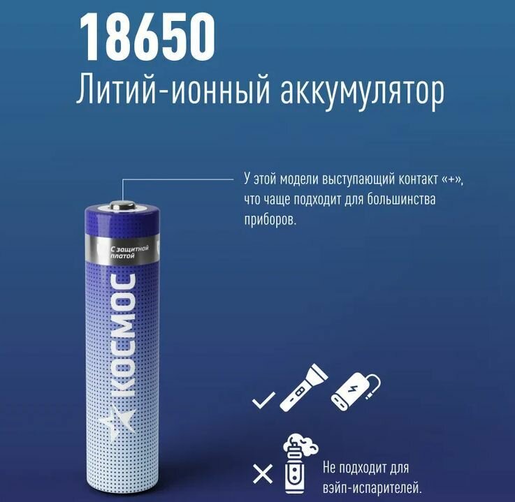 СохранитьАккумулятор Космос Электро Космос Li-ion 18650 3400 mAh с защитой, 1 шт интересное: