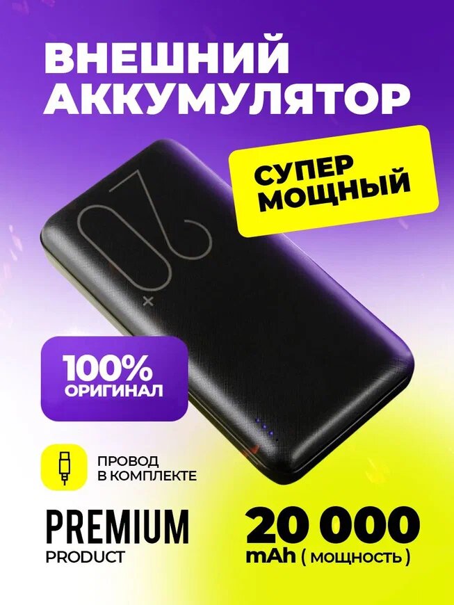 Внешний аккумулятор 20000 mAh, черный