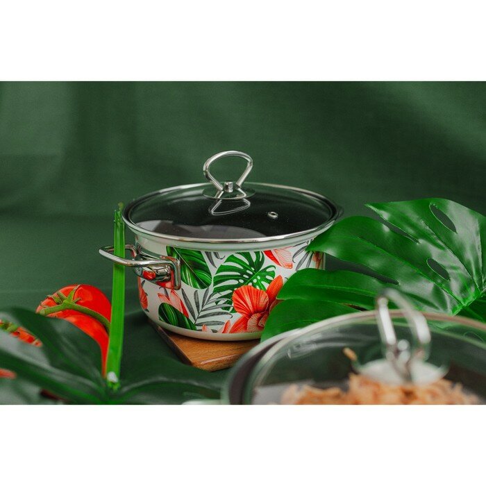 Набор кастрюль "Тропики", 3 предмета: 1.9 л, 2.5 л, 3.7 л, стеклянные крышки, индукция