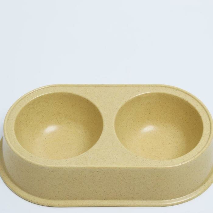 Купить Миска бамбуковая двойная, 23,5 х 13 х 5 см, бежевая