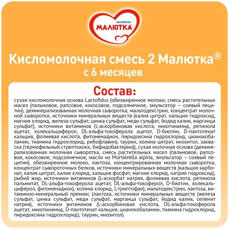 Малютка Кисломолочная смесь №2, 600 гр интересное: