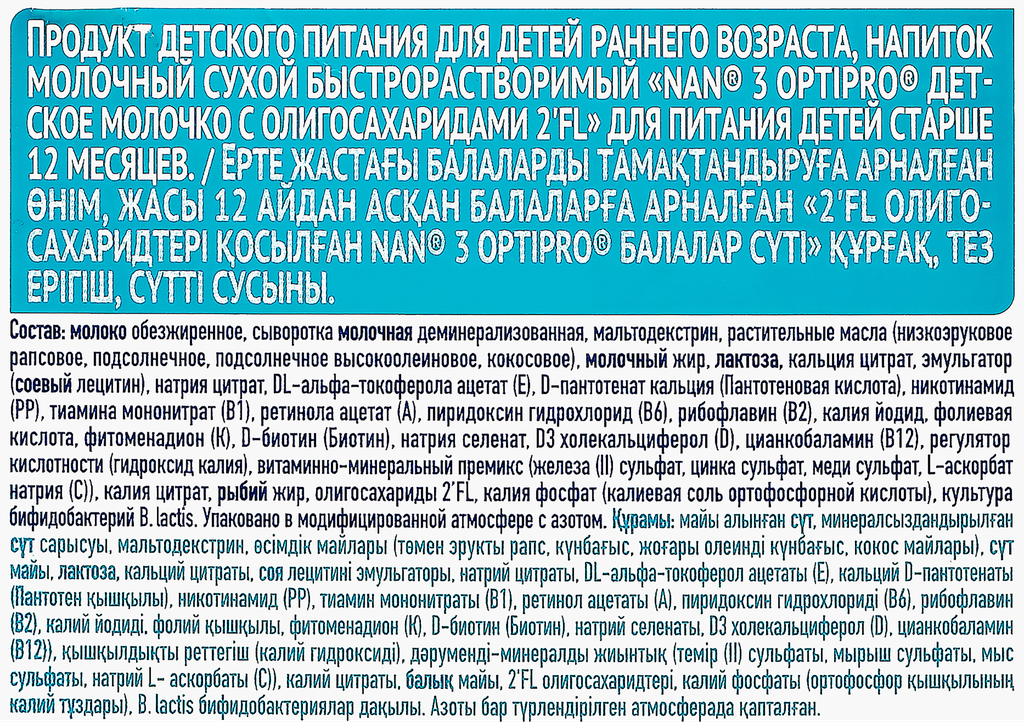 Смесь NAN (Nestlé) 3 Optipro с олигосахаридами 2'FL, с 12 месяцев, 800 г