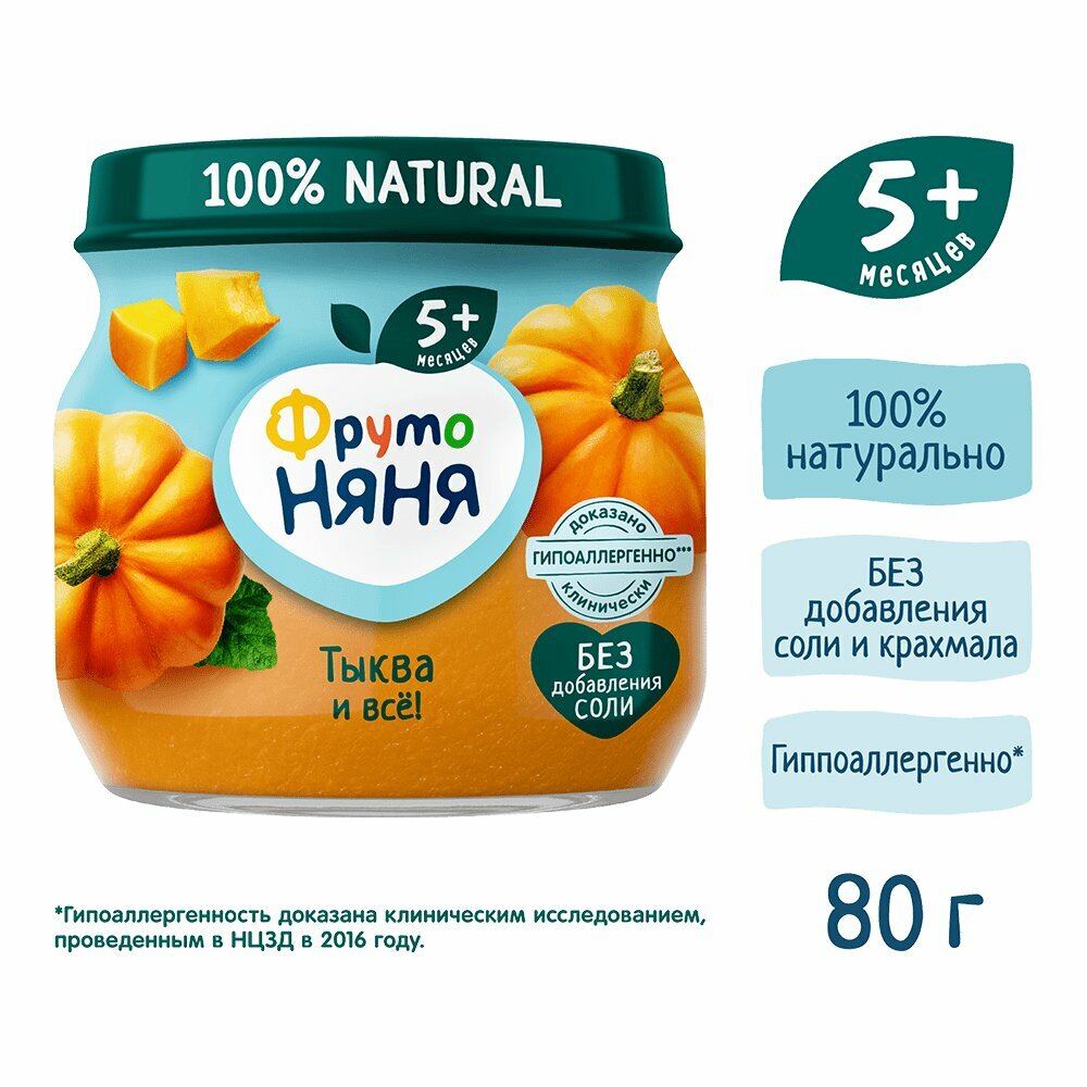 Пюре Фрутоняня Тыква с 5 мес 80 г (12 штук в упаковке)