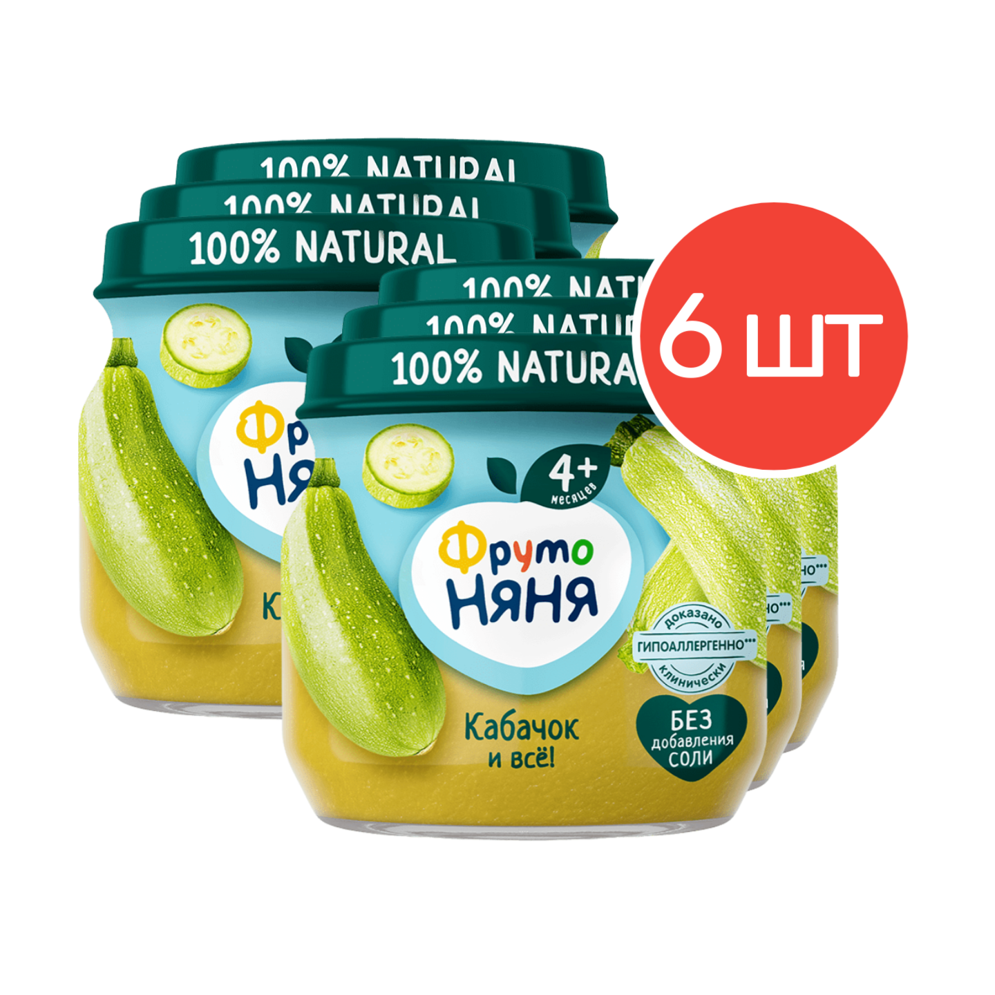 Купить Пюре овощное ФрутоНяня с 4 месяцев, кабачок, 80 г. 6 шт