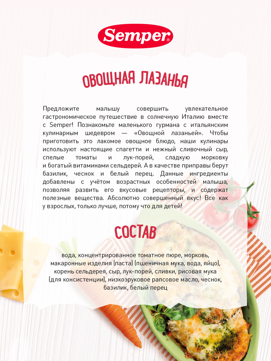 Semper - пюре лазанья с овощами, 18 мес., 190 гр интересное: