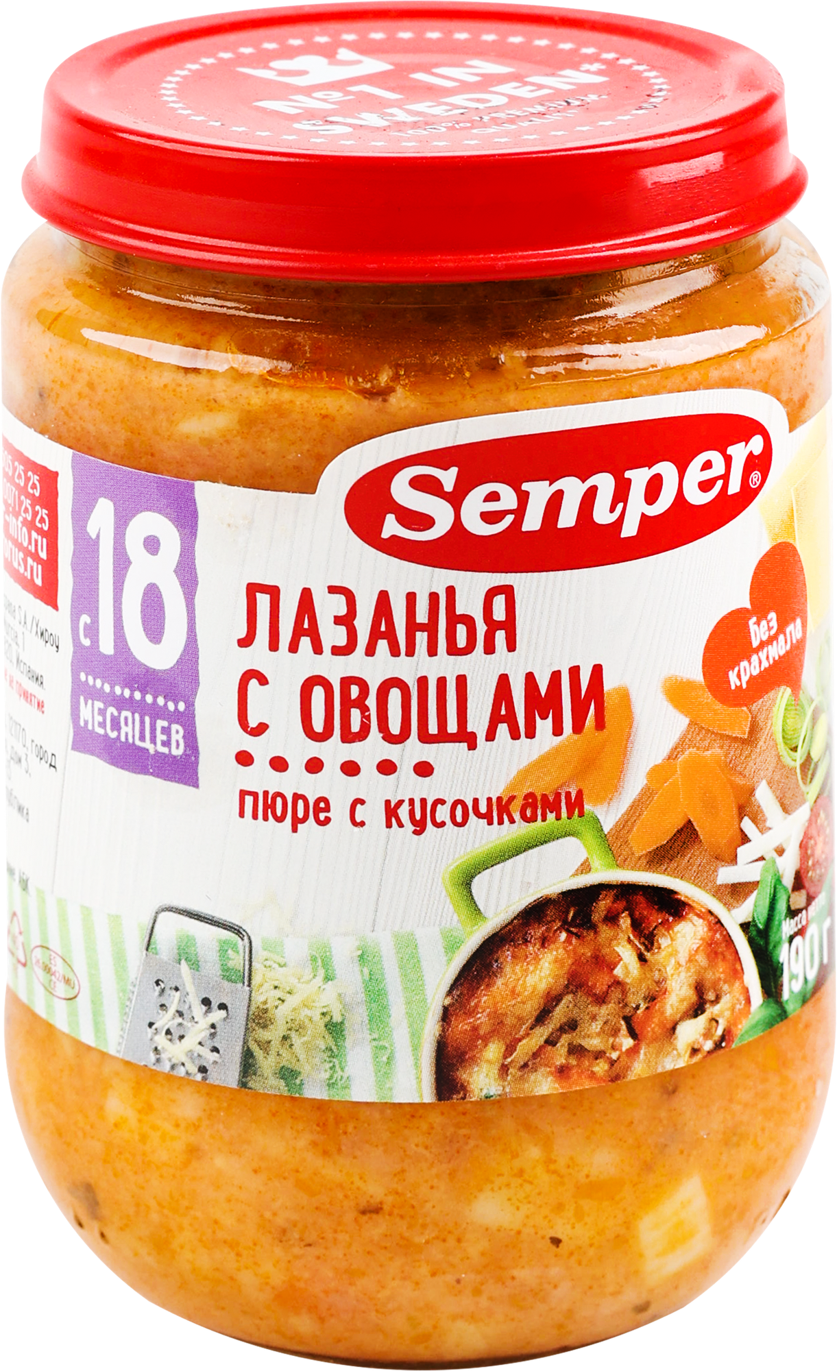 Пюре Semper Лазанья с овощами с 18 месяцев 190 г