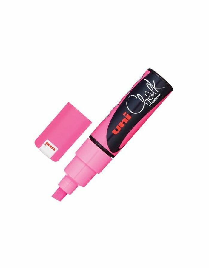Купить Маркер меловой Uni Chalk 8K 8мм клиновидный розовый флуоресцентный