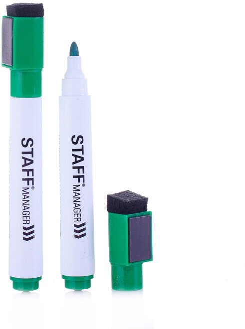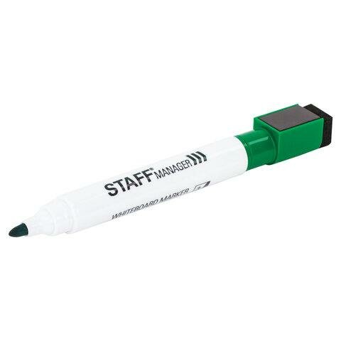 Маркер стираемый для белой доски на магните со стирателем, зеленый, STAFF "Manager", 3 мм, 152005